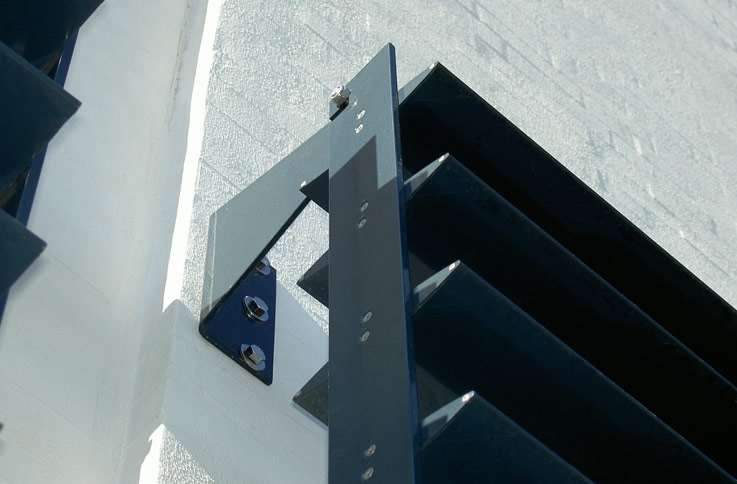 Lamelafskærmning monteret mellem vangerne. Afskærmningen er udført med opluk, så selve rammerne kan vippes op. Det bliver på denne måde lettere at komme til vinduerne, når de skal pudses.